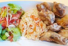 500 г • Рис Басмати, сладкий перец, фасоль, лук, томаты, маслины, морковь, зелень.